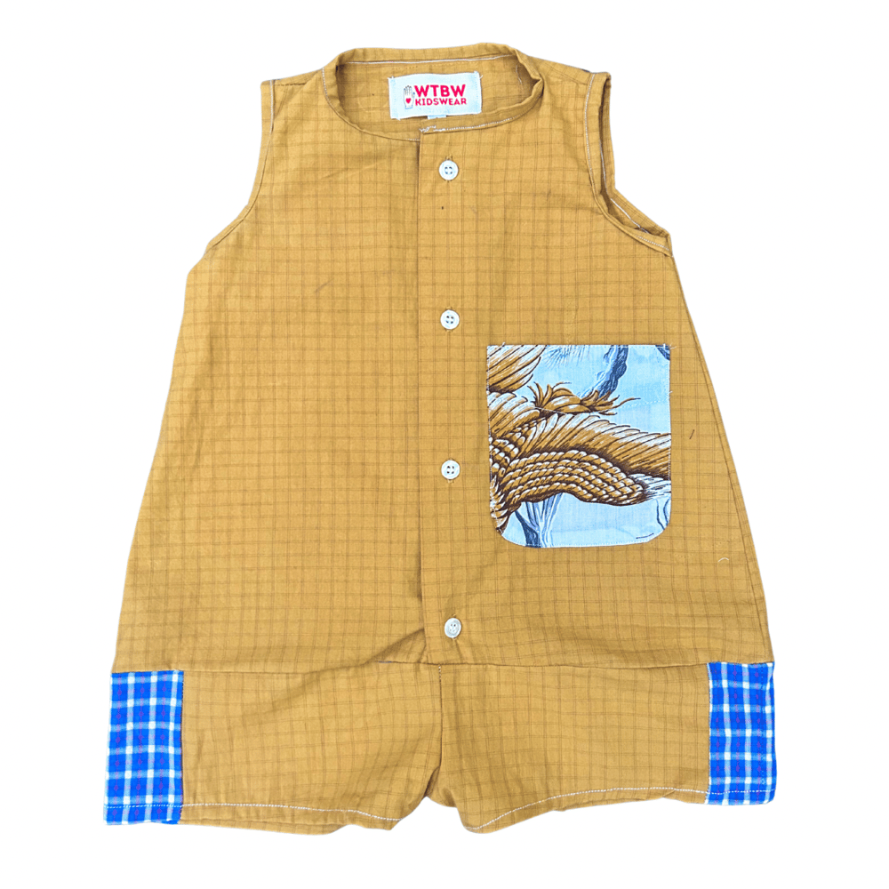 Fully upcycled from thrifted shirts. Including pocket and crotch snaps.