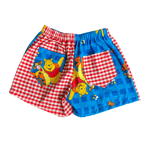 Upcycled from thrifted and vintage fabrics. Including back pockets.